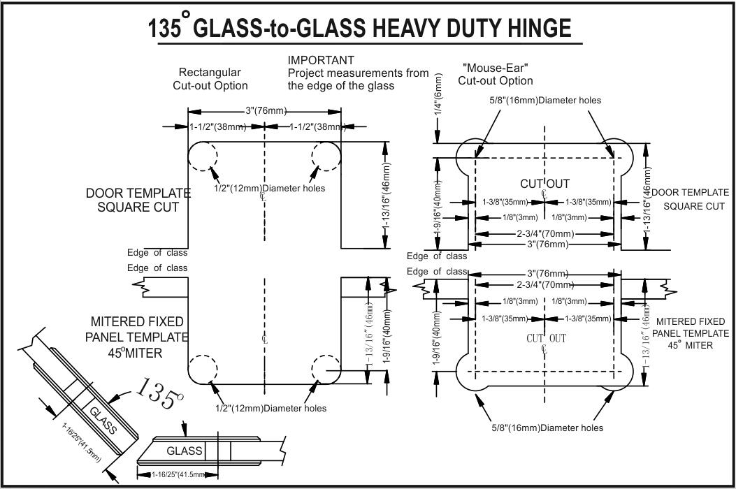Z-7930 Adjustable Heavy Duty Flat Square Corner 135 Degree Glass to Glass Zero Position