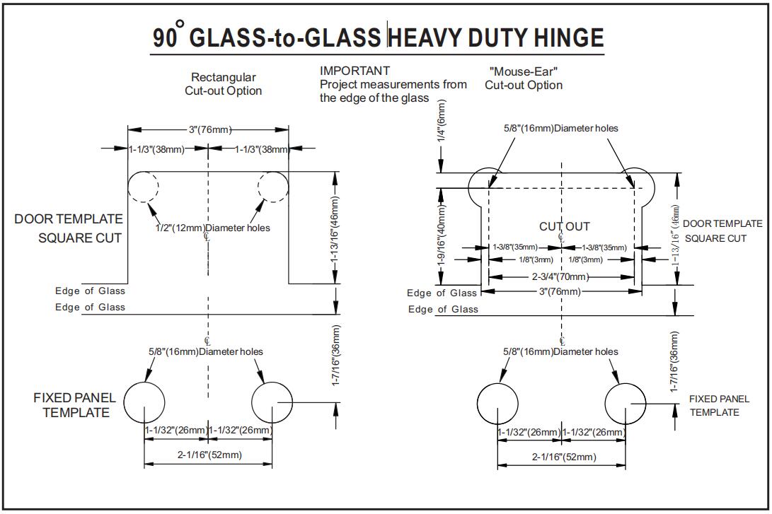 1.Designed for 3/8″(10mm) and 1/2″(12mm)Glass