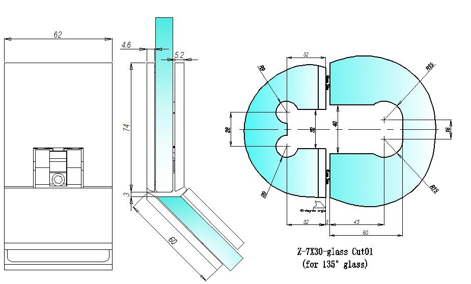 Z-7X30 Adjustable Rectangular Flat 135 Degree Glass to Glass Shower Hinge With Cover