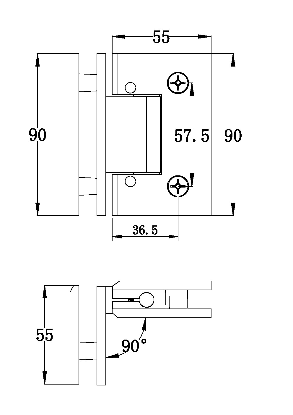 Z-9440 Adjustable Standard Duty Square Corner 90 Degree Glass to Glass Shower Hinge
