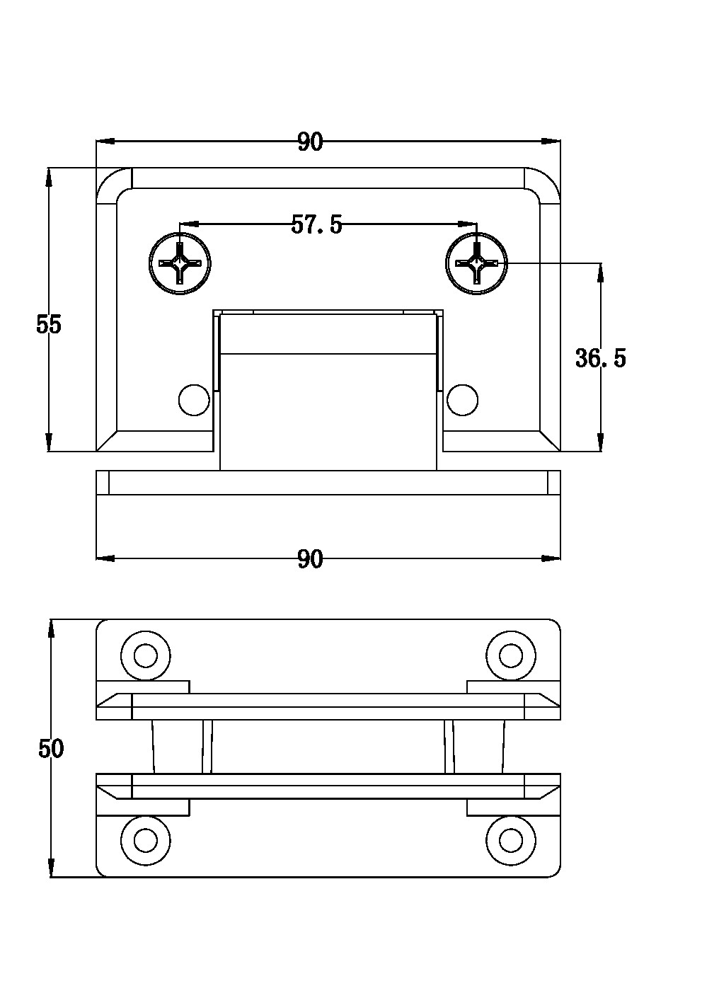 Adjustable Standard Duty Beveled Edge Wall Mount Full Back “H” Plate Shower Hinge