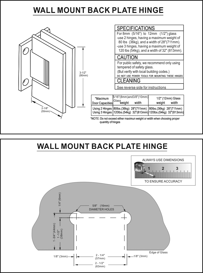 1.Designed for 3/8″(10mm) and 1/2″(12mm)Glass